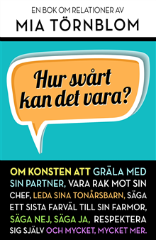 Hur svårt kan det vara att ha med andra människor att göra? Mia Törnblom erkänner utan omsvep att det många gånger är skitsvårt, men egentligen inte så komplicerat. Den här boken handlar om den ädla konsten att: • Gräla med sin partner • Vara rak mot sin chef • Leda sina tonårsbarn • Säga ett sista farväl till sin farmor• Säga nej • Säga ja • Respektera sig själv … och mycket, mycket mer. Mia Törnbloms nya bok bygger på kloka, gripande, komiska, sorgliga och knasiga möten mellan människor som alla berättar något om oss själva, om våra tillkortakommanden och innersta önskningar. Om hur svårt det kan vara att säga det man vill när det egentligen är så enkelt. Hon bjuder som vanligt generöst på historier från sitt eget liv, och boken består även av många berättelser och anekdoter som Mia sprungit på genom åren, både privat och professionellt. Här är det våra relationer som står i centrum. Vi krånglar ofta till saker och många konflikter uppstår i onödan för att vi är otydliga. Hur svårt kan det vara? vill öppna ögonen och göra oss bättre på att kommunicera. Här finns inga metoder eller övningar, men desto mer klokskap, medmänsklighet och igenkänning.